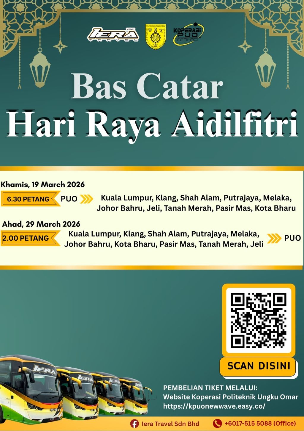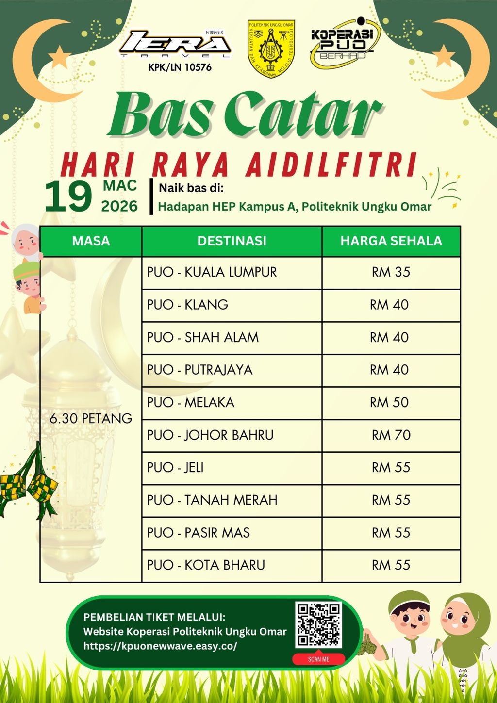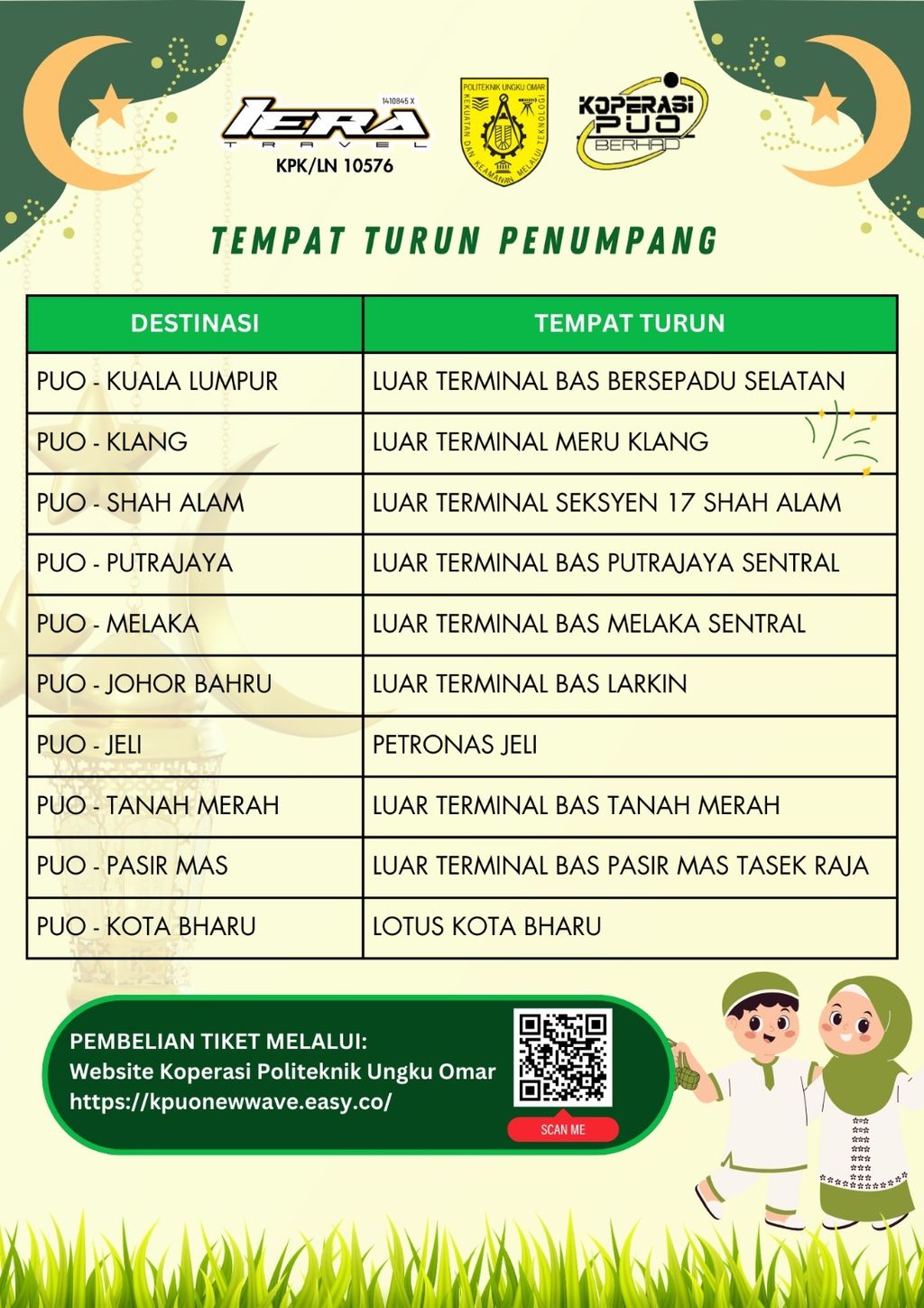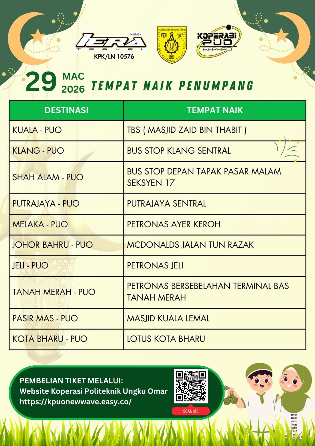 Reserve your seat today and ensure that your Hari Raya Aidilfitri begins and ends with ease and joy. Celebrate this special time with peace of mind, courtesy of our specialized service for the students of Politeknik Ungku Omar. Let us handle the journey, while you focus on creating cherished memories.
